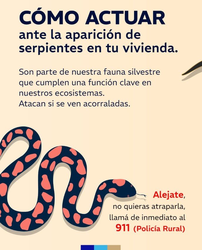 La subsecretaría de Ambiente de la provincia informó que, con el inicio de la temporada de temperaturas cálidas, las familias aumentan las salidas al campo y el movimiento en zonas rurales y de montaña, lo cual suele favorecer los encuentros con serpientes. Desde la dirección de Biodiversidad y Ecoparque recordaron que estos ofidios “cumplen un rol ecológico clave y no deben ser perseguidos, manipulados ni eliminados”, ya que su presencia contribuye al control natural de roedores y otros pequeños vertebrados.