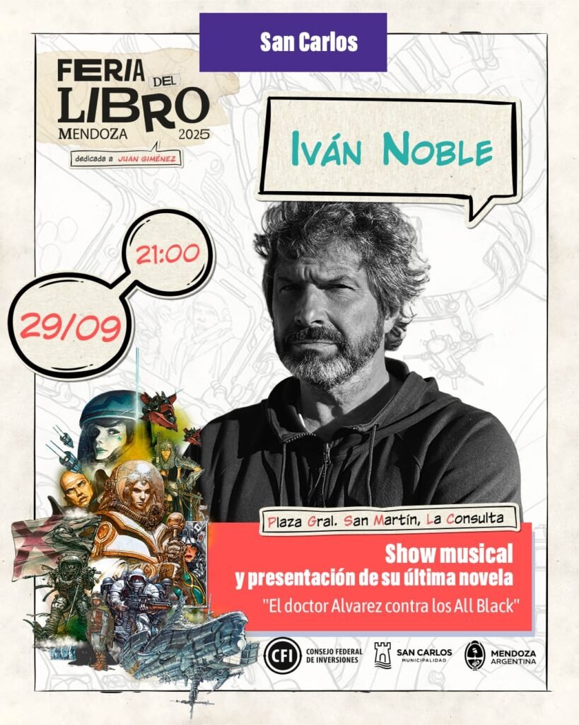 Además, Iván Noble Presenta su última novela » El doctor Alvarez contra los All Black. Show Musical.