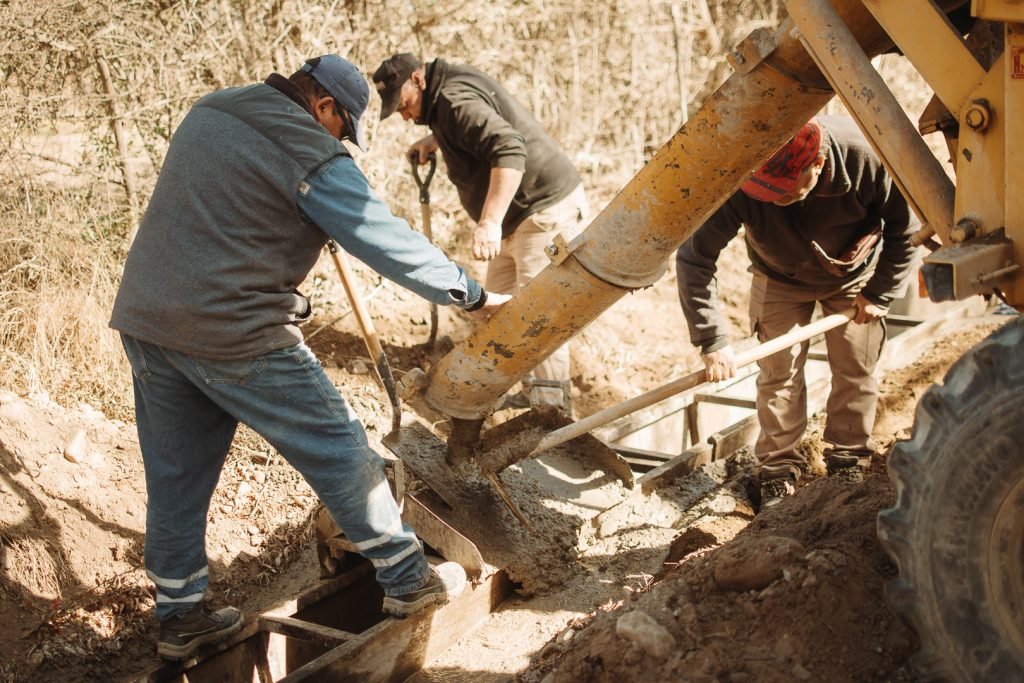 Estas estructuras —conocidas como “obras de arte”— son fundamentales y deben ejecutarse antes del asfaltado definitivo. En paralelo, se ha avanzado en el movimiento de suelo con aporte de material estabilizado, humectación y compactado, tareas que permitirán continuar luego con la imprimación y la carpeta asfáltica final de 5 centímetros de espesor sobre una calzada de 8 metros de ancho.