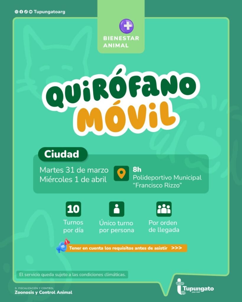 Para el día miecoles 1 de abril, se inicia el mes con la vuelta del quirófano móvil para nuestros peluditos en Tupungato.