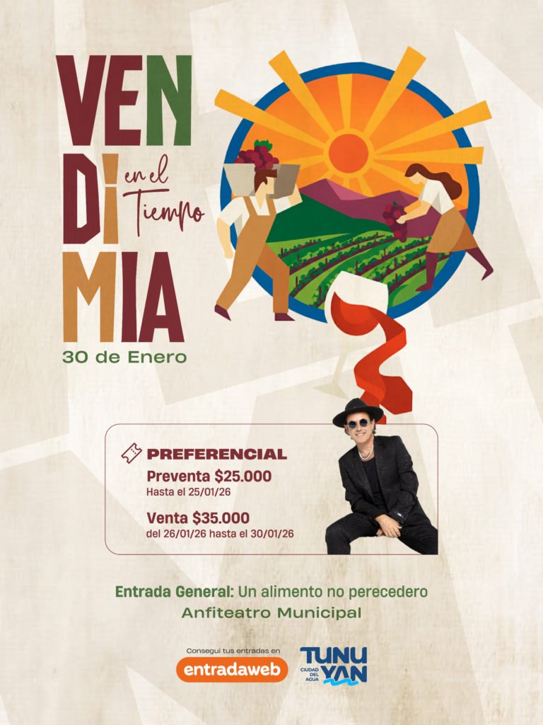 Tunuyán puso en marcha la venta de entradas para la 44ª edición del Festival Nacional de la Tonada y la Fiesta Departamental de la Vendimia, que tendrá lugar del 30 de enero al 1° de febrero de 2026 en el Anfiteatro Municipal.