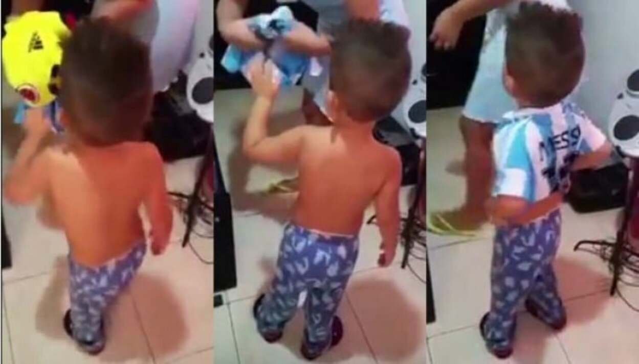 VIDEO: Un niño colombiano se niega a su camiseta y solo quiere la de Argentina