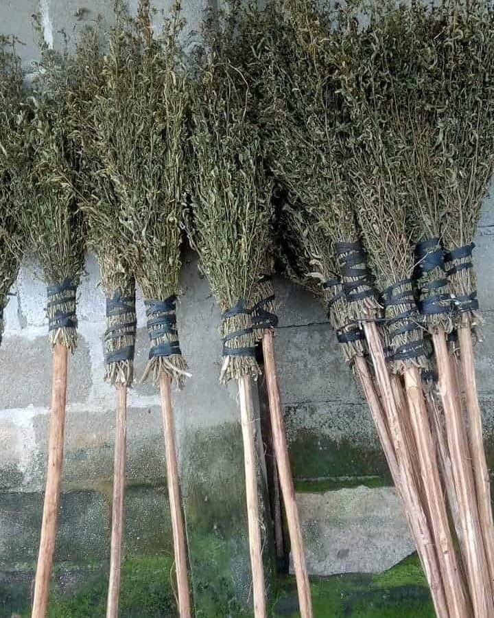 Un querido vecino recorre su pueblo vendiendo escobas de pichana