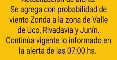 Actualizaron el alerta por Zonda en el Valle de Uco