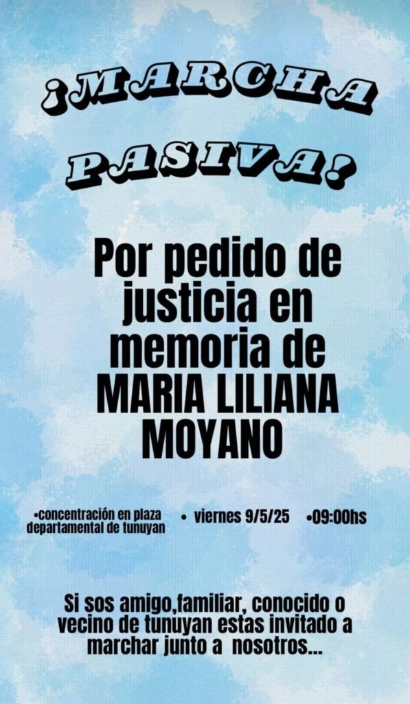Además, durante el día de mañana a las 9, se reunirán en la plaza céntrica de Tunuyán para realizar una marcha pacífica en pedido de justicia. Se extiende la invitación a toda la comunidad.