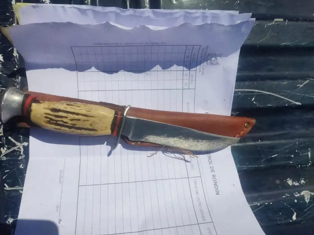 En ese momento, detectaron que un sujeto corría con un cuchillo en su mano. Salieron en persecución, el hombre trastabilló a los pocos metros y cayó sobre la vereda, logrando en ese momento su aprehensión. El agresor fue identificado como Nahuel Kevin Tello, de 24 años.