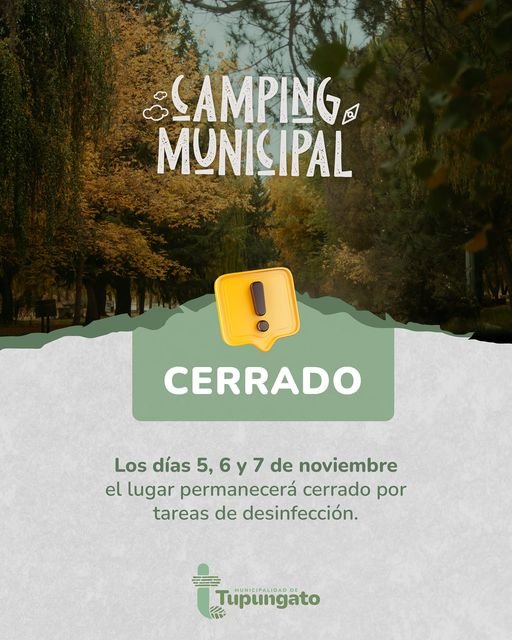 Se debe a que la comuna mantendrá cerrado el camping municipal durante los días 5, 6 y 7, según explicaron se debe a «tareas de desinfección».