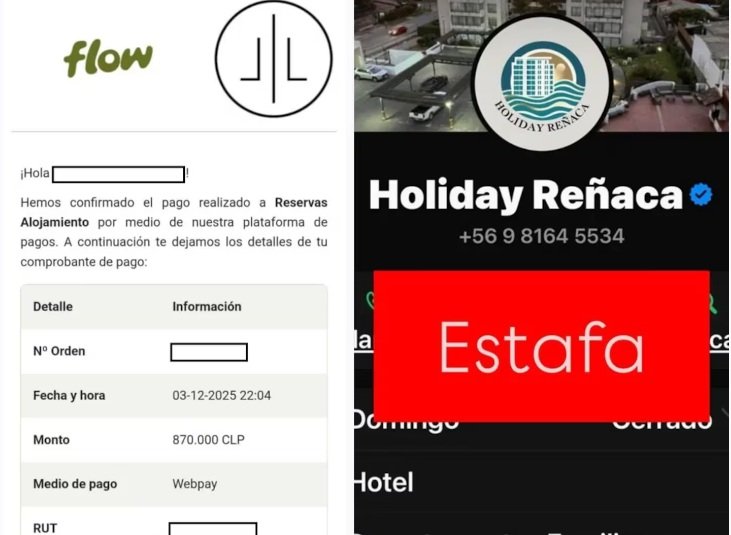 Los estafadores les enviaban un comprobante con un RUT y la razón social (Coference Spa) de la cuenta destino. Es más, uno de los denunciantes contrató el alojamiento falso a través de una reconocida agencia de viajes que derivaba el pago a través de la cuenta de WhatsApp de los estafadores.