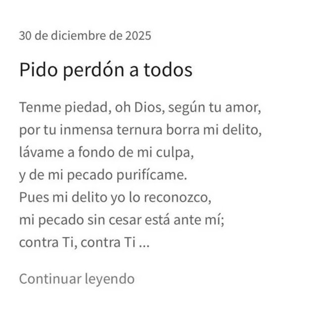 “No será grato para mí este fin de año sabiendo lo que hice, será amargo”, publicó el enigmático responsable, que sumó una cita de los Salmos.