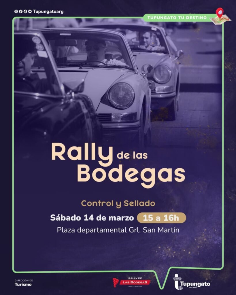 De esta manera, Tupungato se prepara para vivir un fin de semana con fuerte protagonismo del Rally de las Bodegas, acompañado por actividades culturales y comerciales pensadas para toda la comunidad y los visitantes.