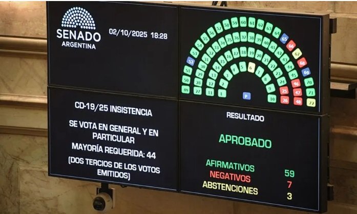 La votación arrojó 59 votos a favor del rechazo al veto, 7 en contra y tres abstenciones.