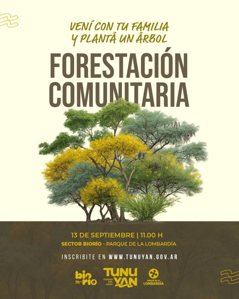 Este sábado 13 de septiembre desde las 11 de la mañana podrás concurrir con tu familia al Parque Lombardía y participar de la forestación comunitaria en el Sector Biorío, un espacio ya elegido por todos para conocer la flora y fauna autóctona de nuestro departamento.