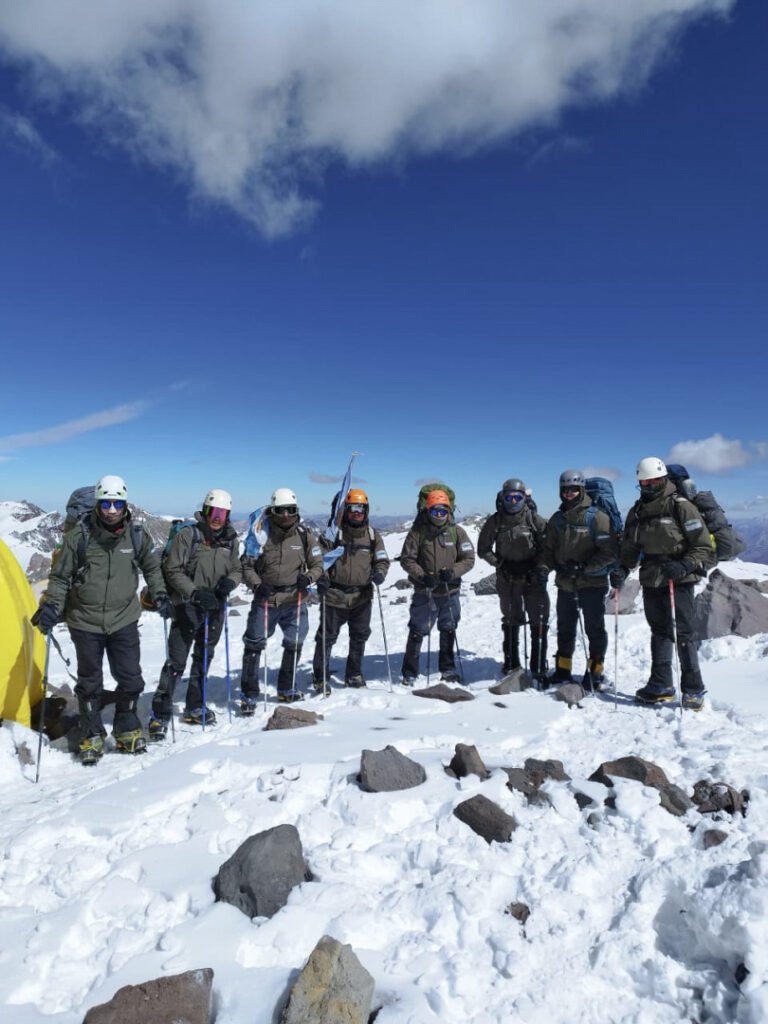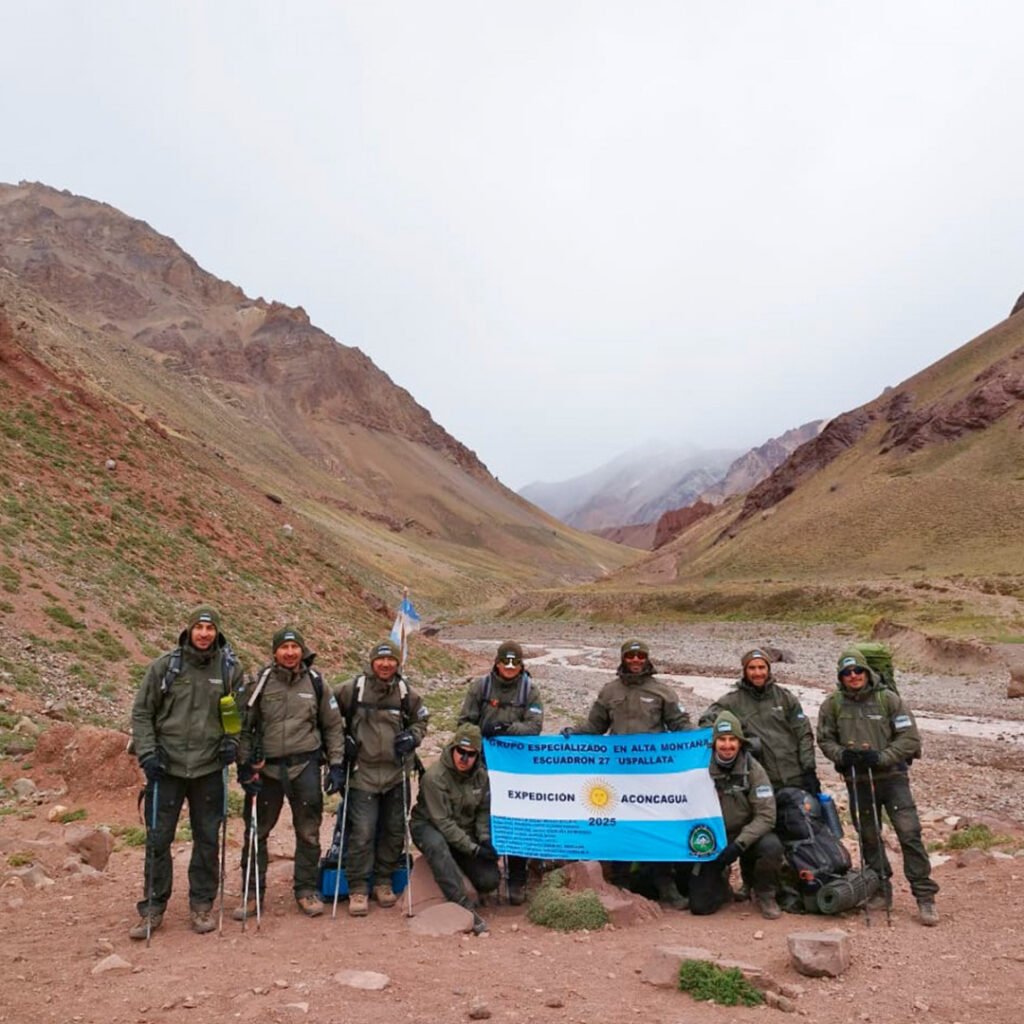 Ocho integrantes del Grupo Especializado de Alta Montaña (GEAM) del Escuadrón 27 «Uspallata» ascendieron exitosamente 6.962 MSNM. Para lograr conquistar la cima del cerro más alto de América, los efectivos del GEAM debieron someterse a un duro entrenamiento.