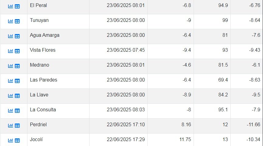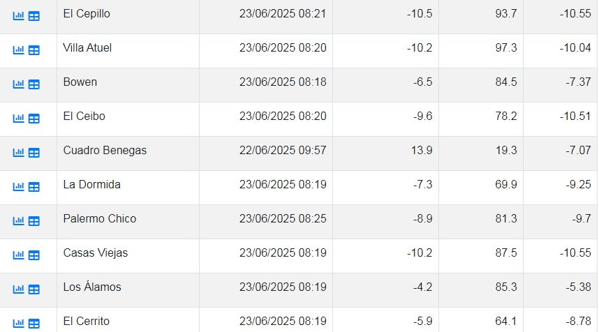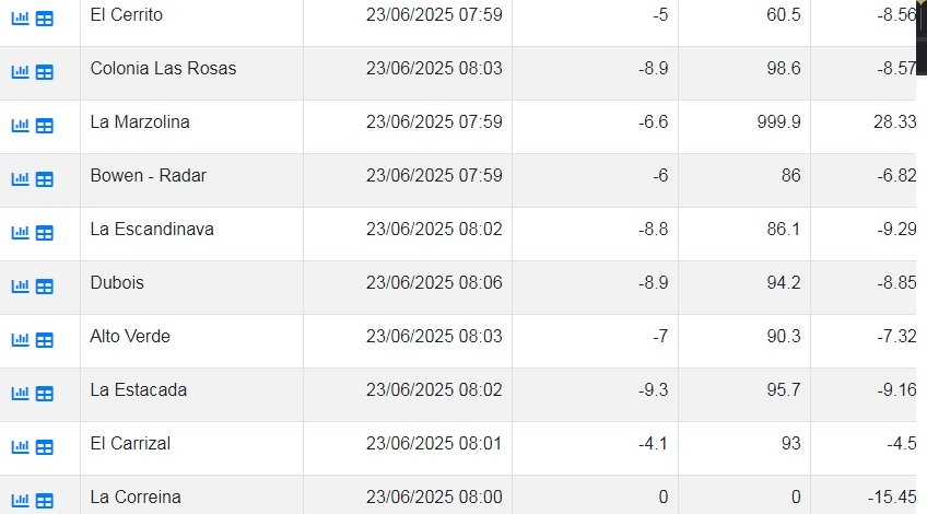 A continuación las temperaturas registradas a las 8 hs de este lunes: