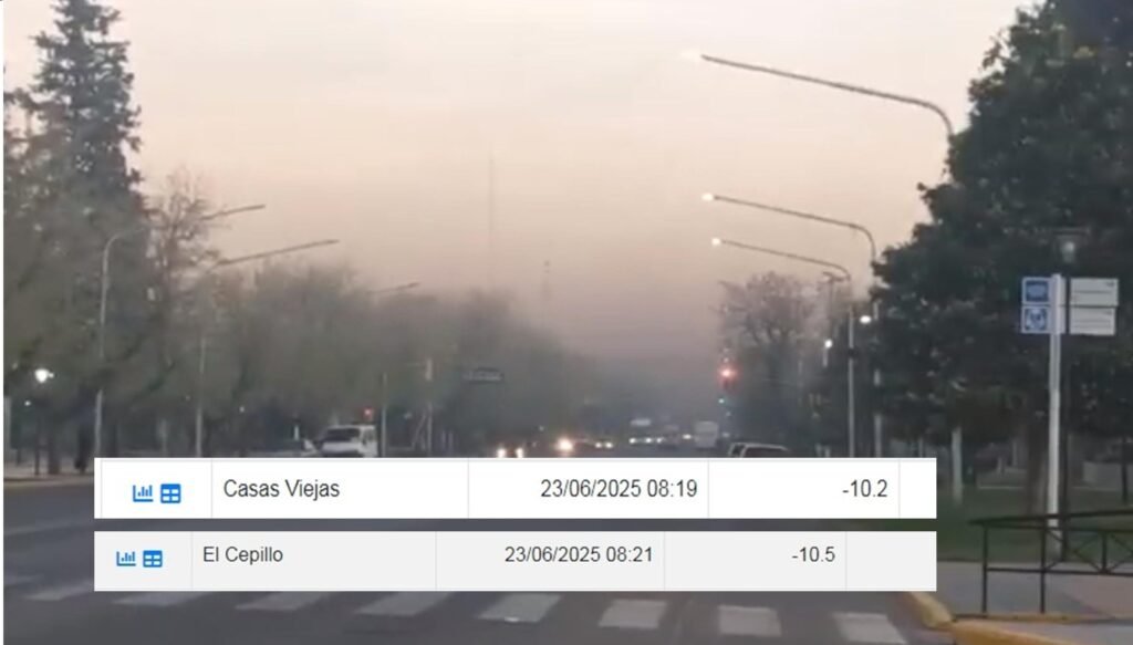 El registro de temperaturas mínimas de la Dirección de Contingencias Climáticas, marcó 10 grados bajo cero en zonas de San Carlos, principalmente donde el termómetro bajó hasta los -10.5°. Mientras Tunuyán y Tupungato rondaron entre los 8 y 9 grados bajo cero también.