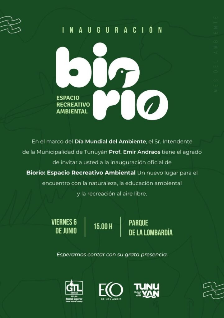 En el marco del Día Mundial del Ambiente, el municipio de Tunuyán inaugurará un nuevo espacio recreativo ambiental en el Parque de la Lombardía