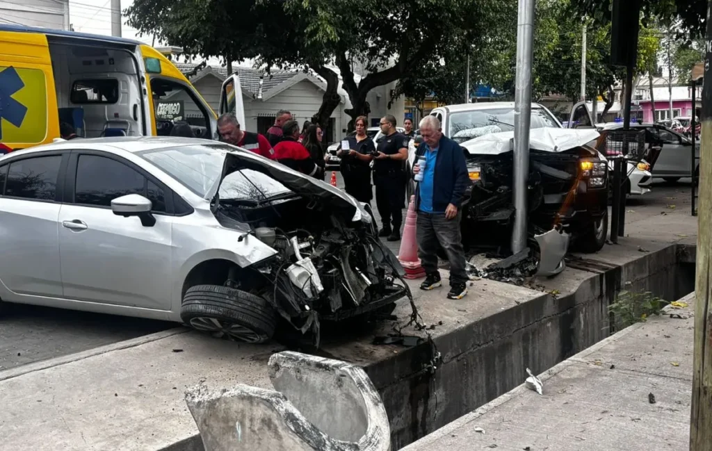 En medio de la maniobra, el delincuente aceleró de manera repentina, pero perdió el control del rodado. Como consecuencia, chocó contra un auto estacionado y luego impactó contra un poste, generando importantes daños.