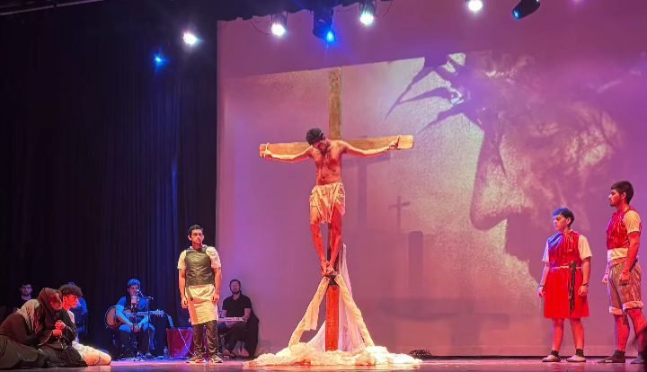 Por último, en el Auditorio Jorge Raúl Silvano, se llevó a cabo la representación artística del Via Crucis, donde los jóvenes de la comunidad plasmaron sobre el escenario las estaciones del camino a la Cruz.