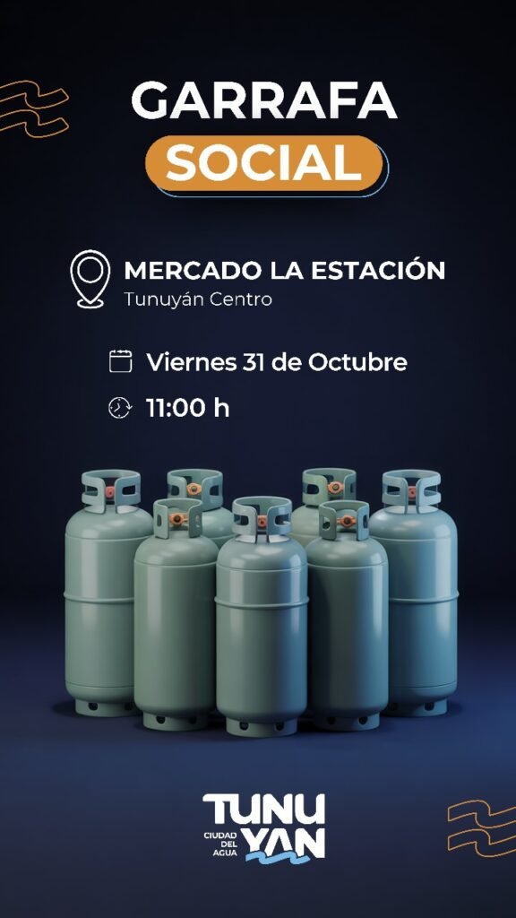El municipio de Tunuyán, mediante la Dirección de Desarrollo Social, llevan adelante una nueva etapa del operativo Garrafa Social. Este viernes, la entrega finaliza en el Mercado de la Estación a las 11 horas.