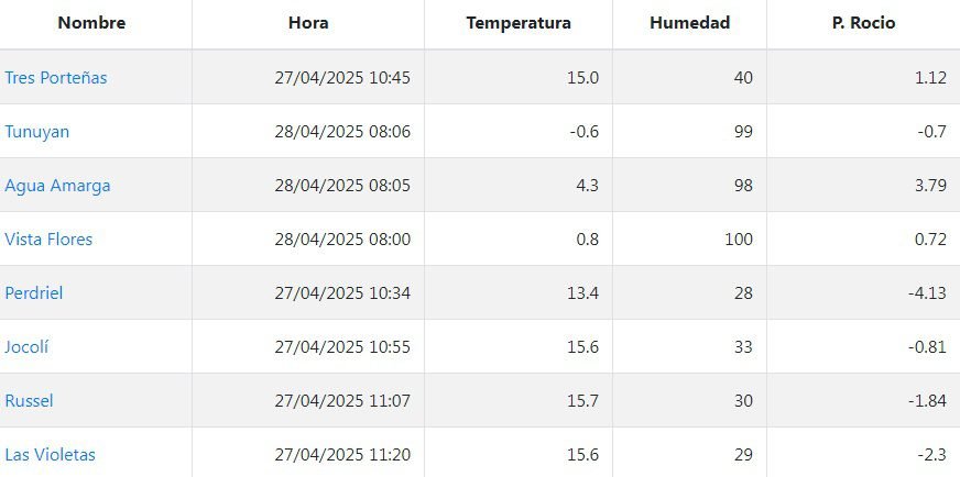 La semana comenzó con temperaturas bajo cero, con un termómetro que marcó -0.6° en Tunuyán y alrededores. El otoño se hace sentir, en líneas generales, con jornadas y temperaturas agradables pero con mañanas frescas.