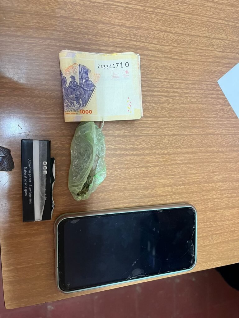 En materia de estupefacientes, tras identificar a dos jóvenes de 20 años, en calle Urquiza y San Nicolas del Barrio Presidencia, les encontraron dos envoltorios con marihuana triturada. Además uno de ellos tenía un pedido por la Justicia de fecha 13/03/2025.