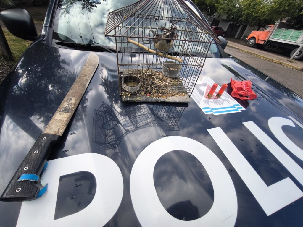 El segundo hecho tuvo origen en un llamado al sistema de emergencias 911, que advertía sobre la presencia de individuos con perros dentro de la finca Pérez, ubicada en la localidad de San José. Al arribar al lugar, los uniformados realizaron un rastrillaje y localizaron a un joven de 20 años oculto entre la vegetación, quien llevaba consigo dos aves de la especie jilguero, además de dos jaulas y dos elementos utilizados para la captura.