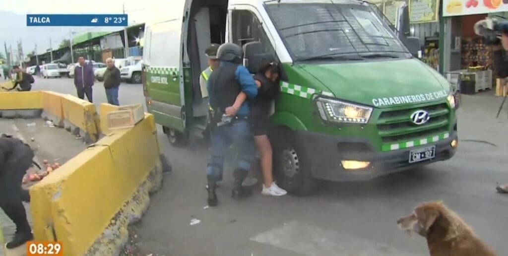 Ocurrió esta mañana en un mercado de Santiago, Chile; y fue transmitido en vivo por TV, pues justamente en el lugar se encontraban diversos móviles televisivos informando sobre las nuevas medidas de seguridad del lugar.