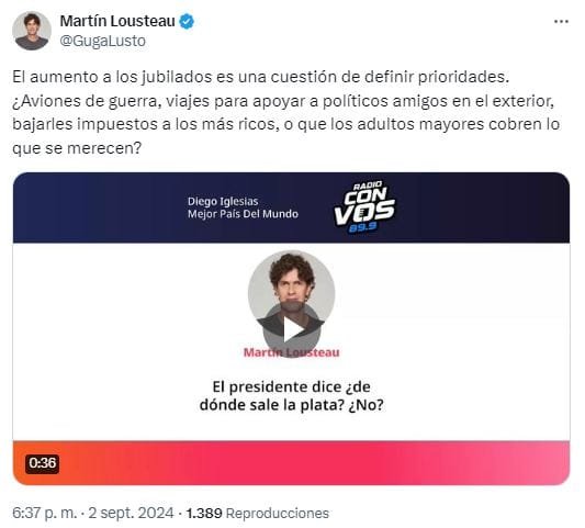 Martín Lousteau, senador nacional y presidente de la Unión Cívica Radical (UCR), llamó a “los argentinos a no darles la espalda a los jubilados”, tras el veto de Javier Milei al aumento en los haberes jubilatorios dispuestos en el nuevo régimen de movilidad aprobado en el Congreso.