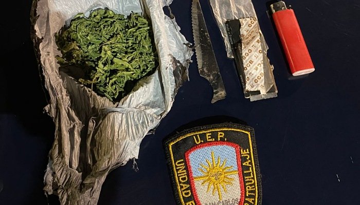 En ese contexto, los agentes detectaron envoltorios de nylon que contenían una sustancia vegetal, además de un librito utilizado para armar cigarrillos, elementos que fueron considerados compatibles con tenencia de estupefacientes.