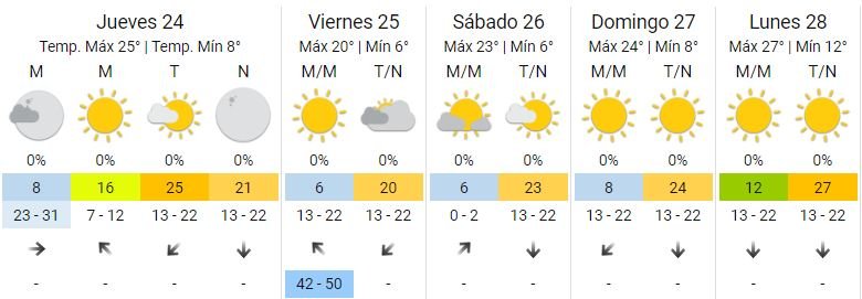 De hecho, el Servicio Meteorológico Nacional por su parte, estima que desde el jueves la temperatura máxima estará por encima de los 20 grados, sin precipitaciones, aunque con alternancias entre despejado y nuboso; probablemente hasta el lunes de la semana que viene.