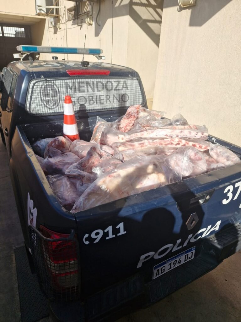 El segundo operativo tuvo lugar en Ruta 7 y calle Cuitiño de San Martín. Personal policial interceptó una camioneta que transportaba carne de manera irregular. En su interior se hallaron aproximadamente 14 kg de un costillar y 5 kg de chorizos, que eran bajados en una carnicería. Se procedió al secuestro del rodado, al decomiso y desnaturalización de la mercadería. Dos hombres fueron puestos a disposición de la Oficina Fiscal.