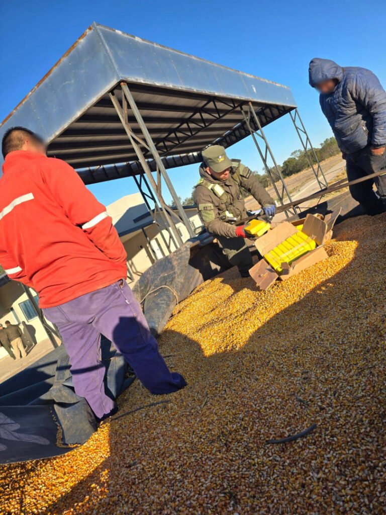 Cuando los uniformados profundizaron el control, constataron dos cajas de cartón ocultas entre los granos, las cuales contenían en su interior 43 paquetes rectangulares envueltos en cinta, arrojando un peso total de 44 kilos 645 gramos de cocaína.