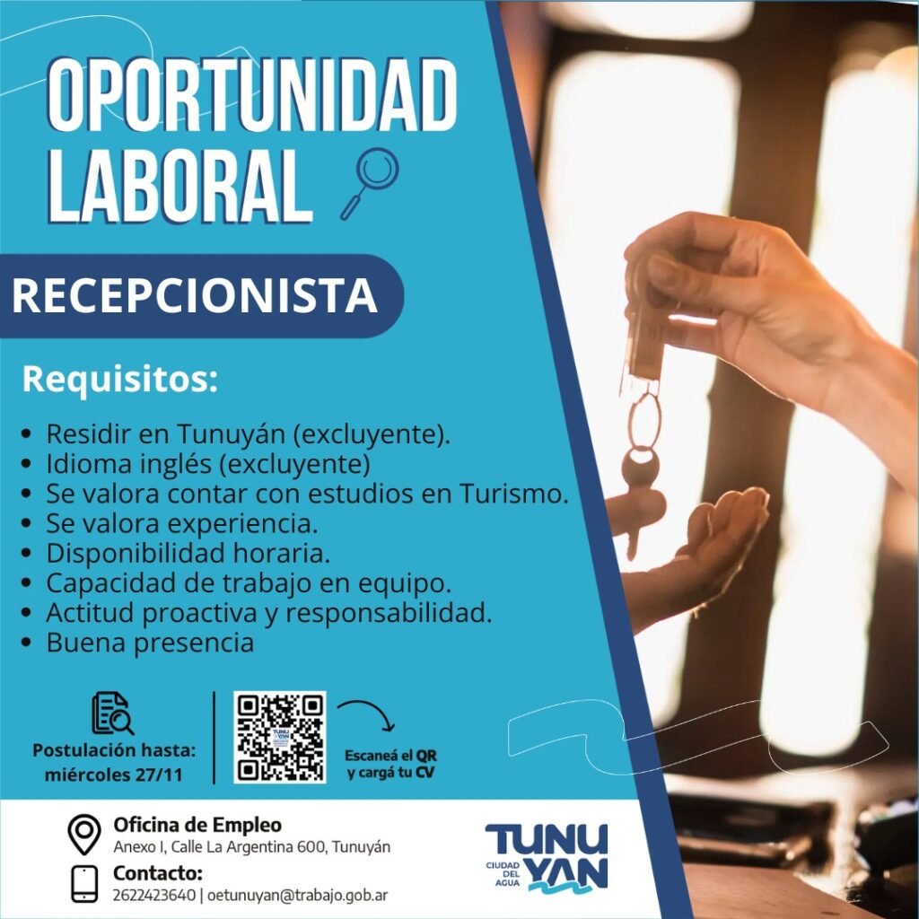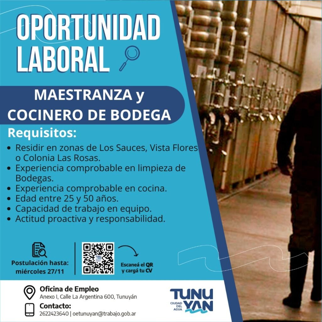 Desde la oficina de empleo del municipio de Tunuyán compartieron propuestas laborales en diferentes empresas del departamento.