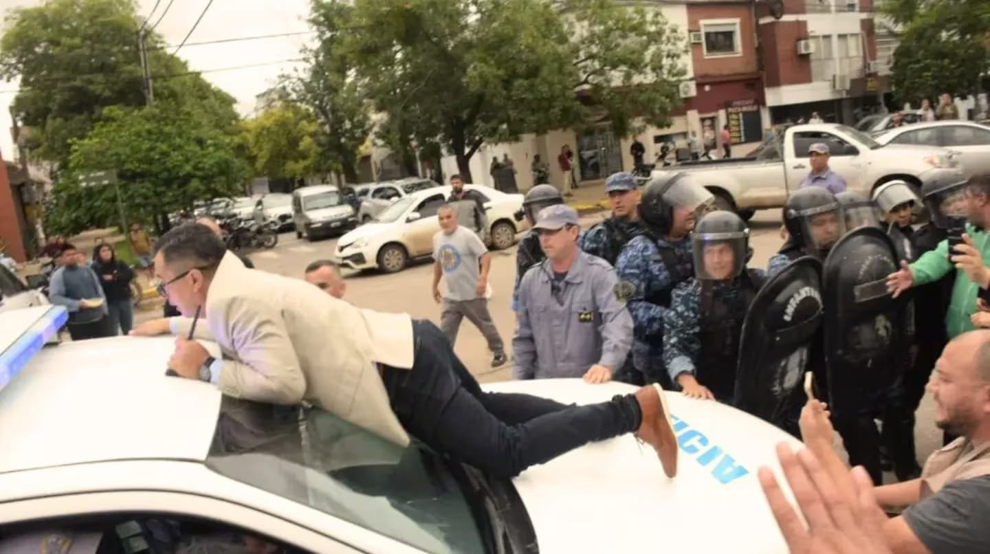 Detuvieron a un concejal chaqueño que se subió a un patrullero para impedir el desalojo de manifestantes