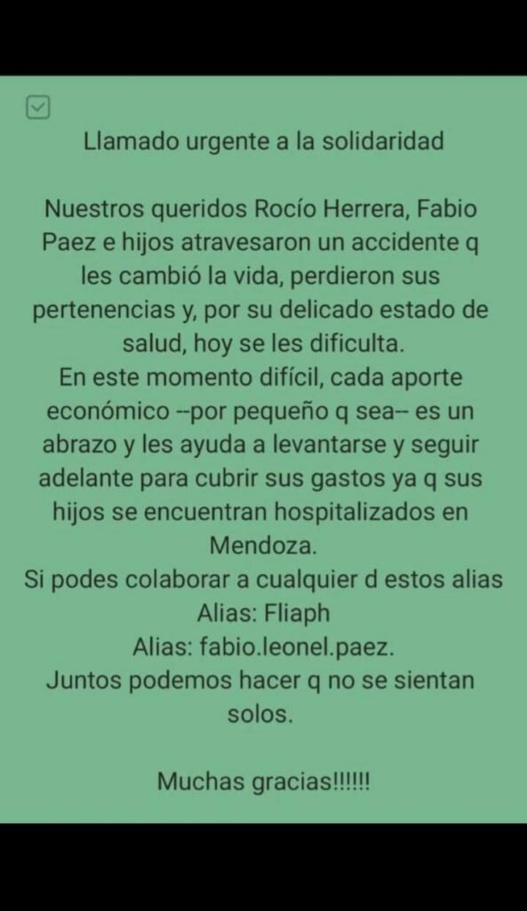 En esta compleja situación que hoy atraviesan, sus seres queridos solicitaron ayuda económica que les permita enfrentar los gastos médicos para sus recuperaciones.