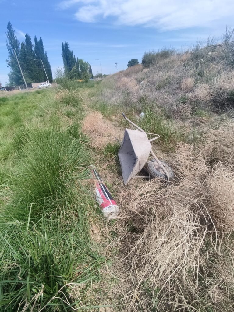 Una vez comenzado el rastrillaje, que incluyo al personal idoneo de Canes, acompañados por dos efectivos de la UEP Tupungato, a unos ochocientos metros del lugar del hecho, lograron recuperar una carretilla, un rollo de membrana y un pico, que habían ocultado en unas malezas.