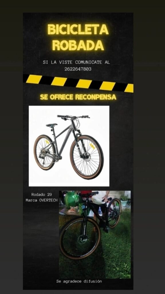 Además, expresó: «Si la persona que la robó, lee esta nota, solo quiero decirle que está a tiempo de devolverla, no somos nadie para juzgar, solo pedimos que la devuelva, ofrecemos recompensa, lo único que queremos es devolverle la bicicleta a mi pequeño»