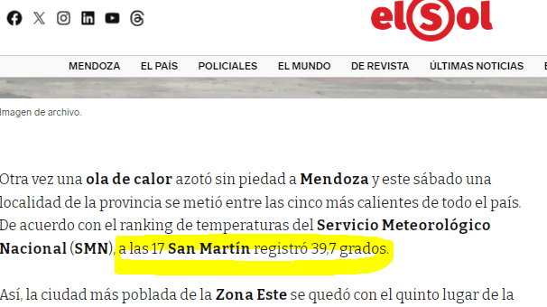 Dejando en claro que muchos de los registros obtenidos en toda la provincia excedieron incluso las marcas de la última ola de calor, hay que poner de relieve que generalmente no se tienen en cuenta semejantes extremos obtenidos en localidades menos pobladas, pero donde sí vive gente. Y éste es un caso realmente llamativo.