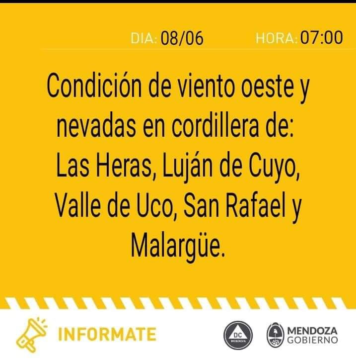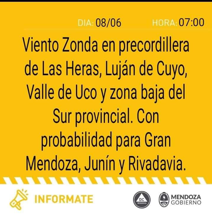 Defensa Civil Mendoza, emitió una alerta, por viento zonda en Luján de Cuyo, Las Heras y Valle de Uco: