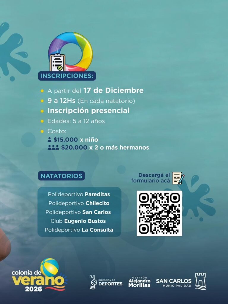 Con el objetivo de brindar un espacio de recreación, aprendizaje y contención durante el receso estival, se anunció el inicio de la Colonia de Verano 2026, que comenzará el 6 de enero y estará destinada a niños y niñas de entre 5 y 12 años.