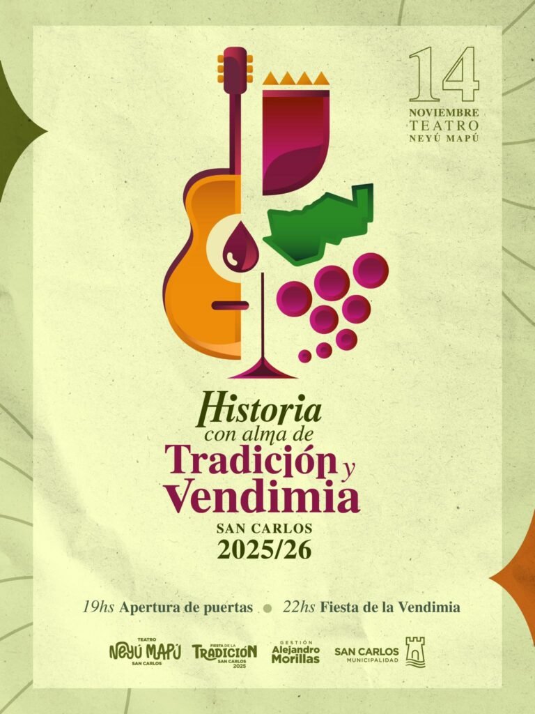 Tras anunciar que será el departamento en abrir el calendario de Vendimia, San Carlos anunció que su fiesta se realizará en el Anfiteatro Municipal Neyú Mapú el viernes 14 de noviembre.