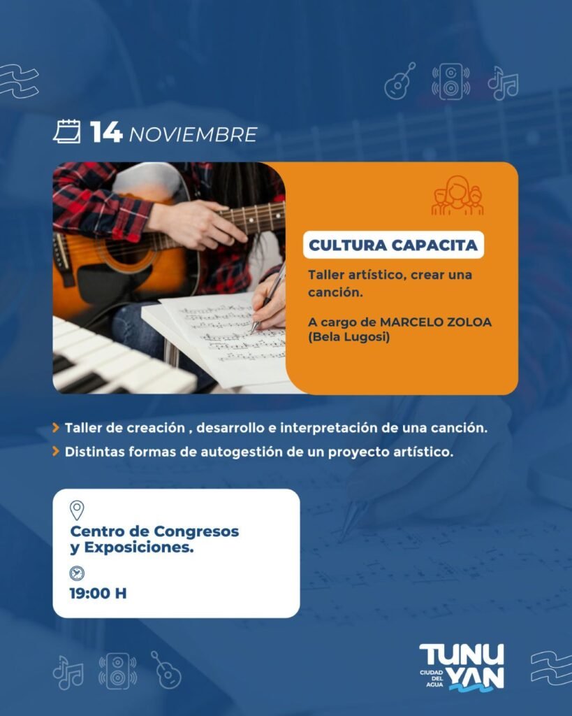Será el 14 de noviembre a las 19 horas en el Centro de Congreso y Exposiciones de Tunuyán. Es una invitación para artistas, compositores, docentes o amantes de la música que buscan crecer y autogestionar sus proyectos creativos.