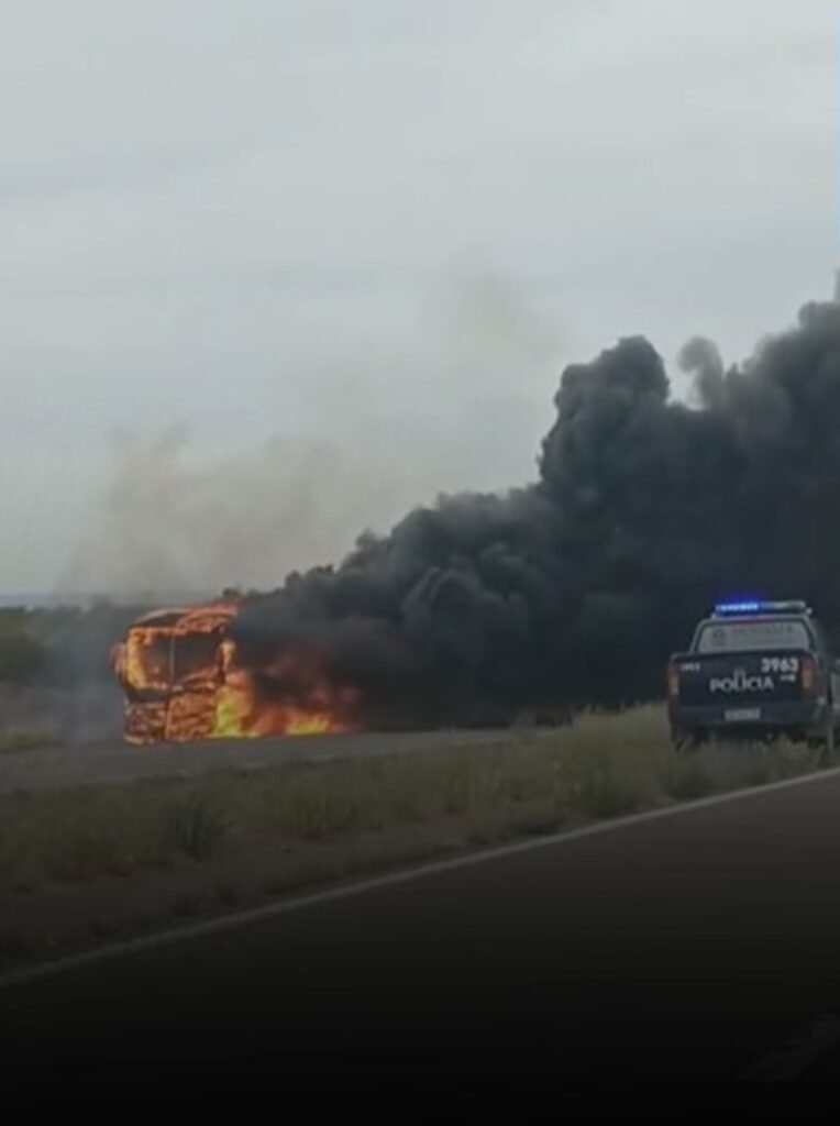 El hecho ocurrió alrededor de las 16 horas de este sábado, 6 de diciembre cuando el colectivo de la empresa Iselin circulaba por la ruta nacional, en el acceso sur a Mendoza. Efectivos policiales y de tránsito municipal cortaron la circulación en ambos sentidos de la ruta y la dotación de bomberos que llegó al lugar trabajó para sofocar las llamas.