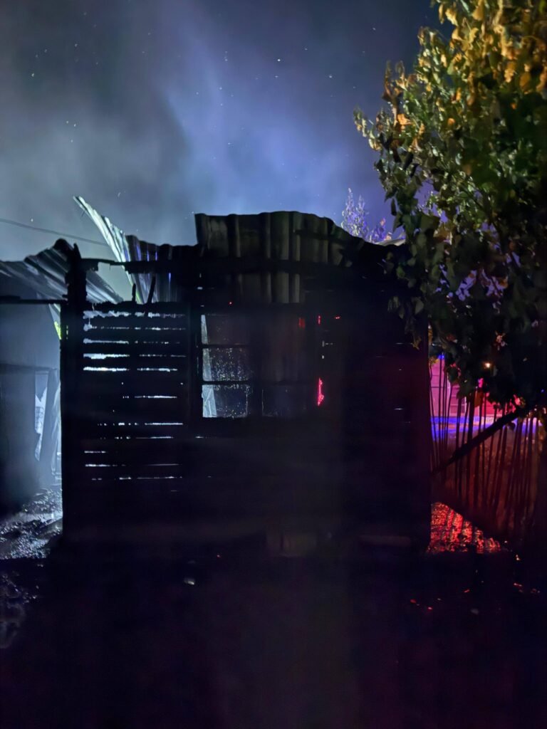Un llamado al 911 informó sobre un incendio en una vivienda. Al arribar personal policial y bomberos, se constató un incendio en una vivienda prefabricada de madera, resultando con daños totales.