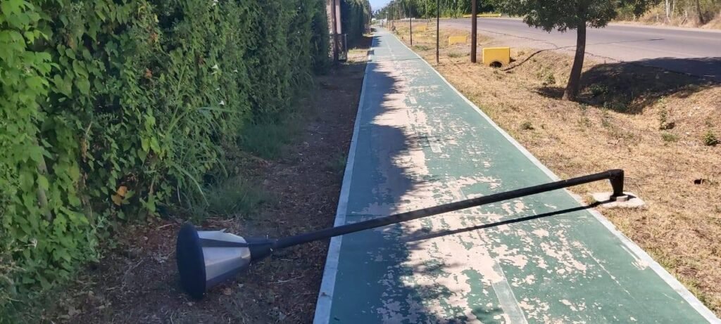 Desde la delegación municipal del distrito Vista Flores, rompieron ocho farolas ubicadas en la ciclovía del ingreso norte.