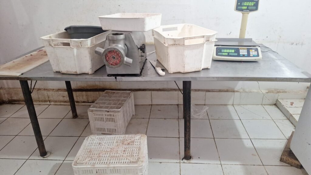 Durante el procedimiento, se incautaron otros elementos utilizados para la venta y manipulación de los alimentos, como balanzas, máquinas, una cámara de frío, cuchillos y un teléfono celular.