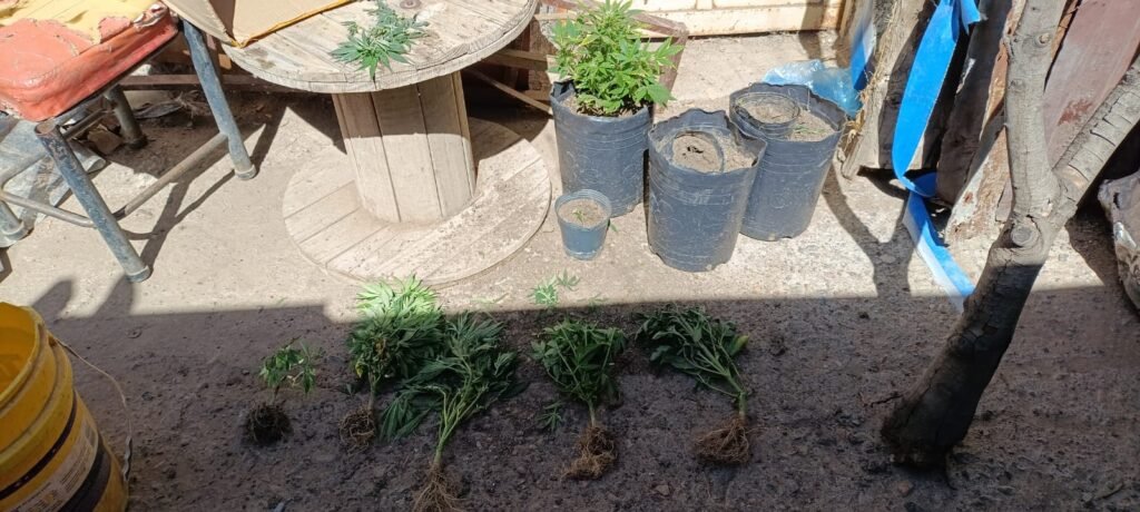 En el centro, luego procedieron al secuestro de SEIS PLANTAS DE MARIHUANA DE 20 a 40cm de altura. Además, quien las tenia en su poder, presentaba una medida pendiente con la Justicia de fecha 19/06/2025.