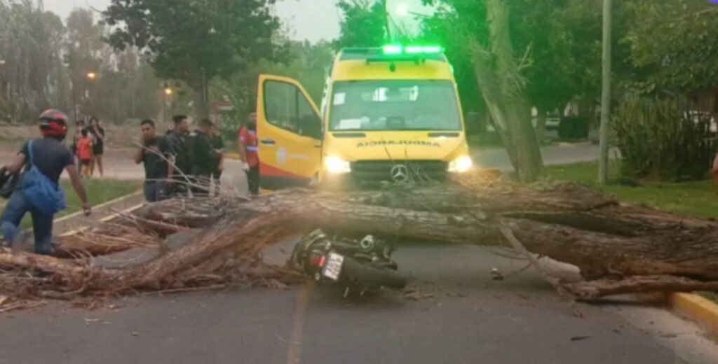En Maipú, un árbol completamente deteriorado cayó sobre un Peugeot 504, dejándolo destruido casi por completo. En Guaymallén, otro ejemplar cedió sobre el carril y terminó hiriendo a dos jóvenes que circulaban en motocicleta; afortunadamente, ambos resultaron con lesiones leves y se recuperan fuera de peligro.