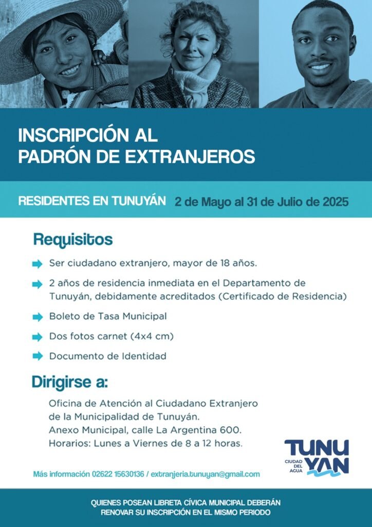 Horarios de atención: Lunes a viernes, de 8 a 12 horas. 📞 Más información: 2622-630136 o extranjeria.tunuyan@gmail.com