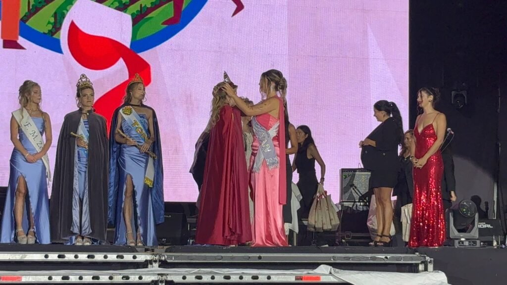 Durante la celebración se llevó a cabo la esperada coronación de las nuevas soberanas. Agustina Giacomelli (FMZ 95.5) fue elegida Reina Departamental de la Vendimia, mientras que Pilar Serrani, representante del distrito Vista Flores, fue coronada Virreina Departamental.